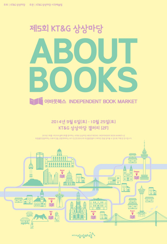 KT&G는 독립출판물 기획전 '어바웃북스(ABOUT BOOKS)'를 서울 서교동에 위치한 KT&G상상마당에서 오는 9월 6일부터 10월 25일까지 개최한다.