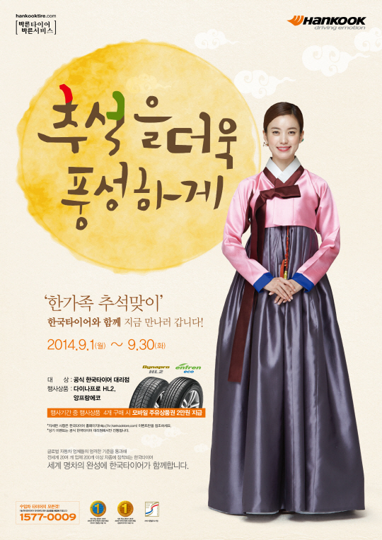한국타이어가 추석을 맞아 타이어 구매 고객을 대상으로 한가위 맞이 사은 이벤트를 9월 30일까지 진행한다.