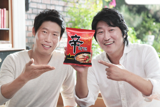 농심은 2일, 신라면의 광고 모델로 인기 영화배우인 '송강호'와 '유해진'을 동시 발탁했다고 밝혔다.
