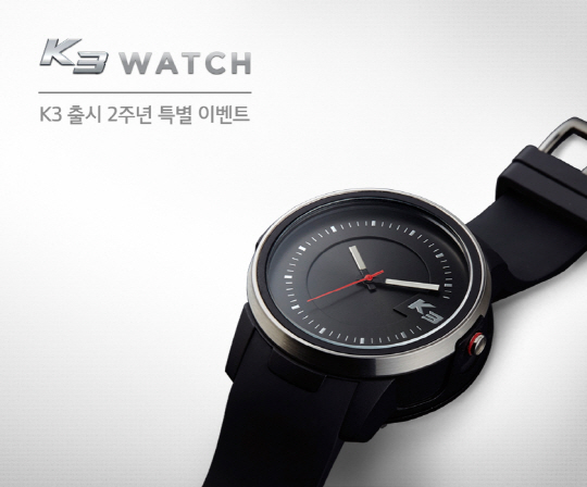 기아자동차가 K3 출시 2주년을 맞이해, 9월 K3 개인 출고고객을 대상으로 국내 최초로 스마트키 기능을 탑재한 'K3 워치(K3 Watch)' 1500개를 선착순으로 한정 제공한다.