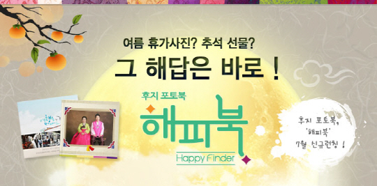 이번 프로모션은 민족 최대 명절인 추석을 맞아, 감사함과 추억을 더한 추석 선물을 부모님께 전할 수 있도록 준비됐다. 스마트폰이나 디지털카메라로 촬영한 사진을 하나의 책으로 제작하는 신개념 포토북 서비스인 해피북을 20% 할인된 가격에 구매할 수 있다. 30일까지 진행된다.(여행 템플릿, 색동저고리, DIY등 총 12종)