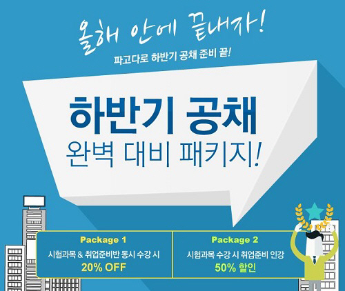 파고다아카데미(대표이사 박경실)가 3일 하반기 공채 시즌을 맞아 대학생 및 취준생들을 위한 '공채 완벽대비 패키지' 이벤트를 진행한다고 밝혔다. 강의는 1일부터 시작됐지만 10일까지 수강 등록이 가능하다.