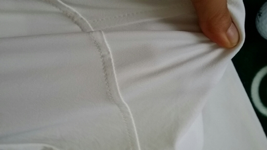 손씨는 일단 골프웨어로서 필수조건이라 할 수 있는 활동성에서 이 팬츠 소재에서부터 높은 점수를 줬다. 폴리우레탄이 함유된 스트레치 원단을 사용해 제작한 직물덕에 팬츠는 한마디로 '짱짱'하면서도 신축성이 아주 좋다.