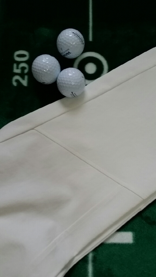 바지 속에 골프 공을 넣고 촬영을 해봤다. 브랜드가 크게 써진 쪽을 위로 했는데, 전혀 속이 비치지않는다.