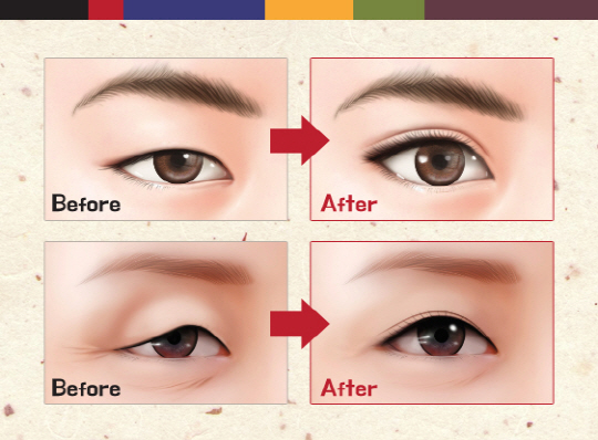 공격적인 느낌을 주는 올라간 눈꼬리는 적절한 수준으로 개선하면 오히려 젊고 세련된 인상을 줄 수도 있다. 한국인에게 많은 몽고주름은 답답한 느낌을 줄 뿐 아니라 실제 자신보다 나이들어 보인다는 느낌을 주기도 해 눈사이 간격을 개선해줌으로써 시원한 눈매와 동안얼굴을 기대할 수 있다.