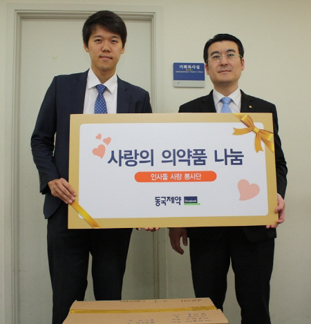 올해들어 다양한 사회공헌활동을 활발히 펼치고 있는 동국제약이 해외의료 봉사팀에 의약품을 후원했다.