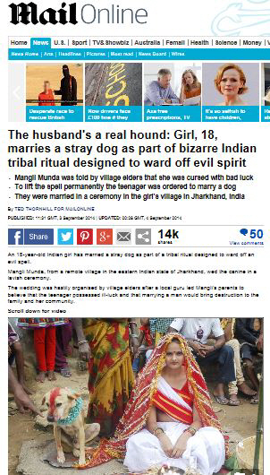 인도에서 개와 결혼한 10대 소녀의 사연이 전해져 충격을 주고 있다.