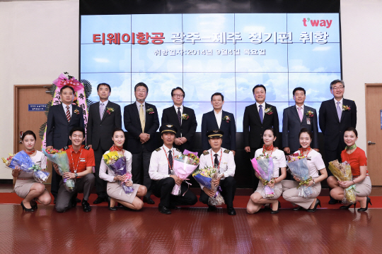 티웨이항공은 9월 4일 오전 7시 LCC 최초로 광주-제주 운항을 개시했다고 밝혔다. 티웨이항공에 따르면 광주공항에서 8시 40분부터 윤장현 광주광역시 시장, 조영표 광주광역시의회 의장, 권순구 한국공항공사 광주지사장을 비롯한 지역 인사들과 함철호 티웨이항공 대표가 참석한 가운데 광주∼제주노선 취항 기념식을 개최했다.