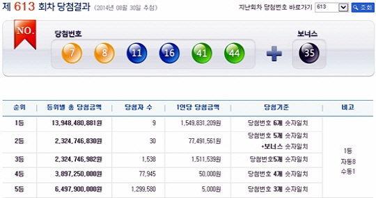 <스포츠조선닷컴/사진=나눔로또 공식 홈페이지>