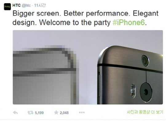 대만 스마트폰 제조사 HTC가 애플의 신제품 아이폰6의 디자인을 조롱했다.
