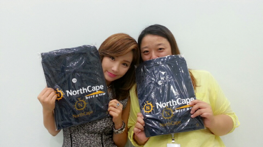 인기 드라마 '왔다 장보리'에 노스케이프 바람막이 재킷 등의 선물이 도착했다. 사진 왼쪽은 주인공 이유리.