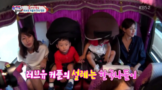 지난 7일 KBS2 육아 예능 프로그램 '해피선데이-슈퍼맨이 돌아왔다'(이하 슈퍼맨)에서 추사랑이 일취월장한 한국어 실력을 뽐내는 모습이 전파를 탔다. 그리고 슈퍼맨 1주년 특집 방송녹화를 위해 추사랑의 단짝친구 유토도 함께 한국을 방문했다. 녹화에 앞서 서울로 향하던 버스 안에서 야노시호는 딸 사랑이에게 한국어 인사를 가르치는 모습을 공개했다.