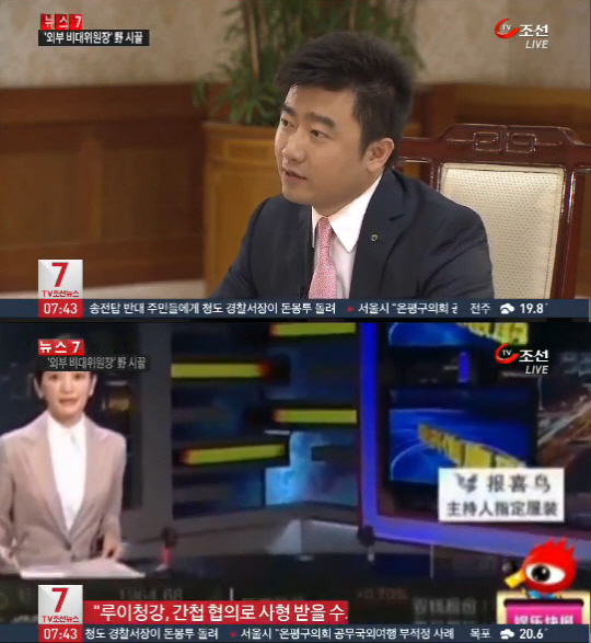 루이청강은 지난해 6월 박근혜 대통령의 중국 국빈방문을 앞두고 청와대에서 박 대통령을 직접 인터뷰하기도 했다. 그는 이후 웨이보에 박 대통령이 자신에게 직접 써준 글이라며 '인생을 살면서 도리를 거스르지 않고 마음 편하도록 힘쓰면 된다(人生在世, 只求心安理得就好了)'는 친필 격려 메세지를 찍어 올려 화제를 모았다.