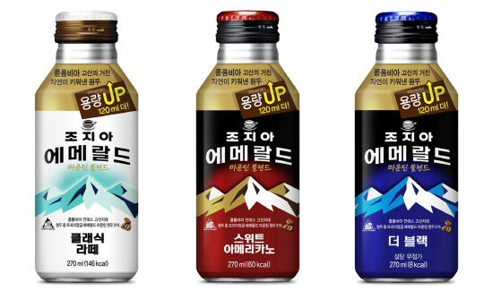 코카-콜라사의 캔커피 브랜드 조지아 커피는 올해 3월 프리미엄 커피인 조지아 에메랄드마운틴블렌드 알루미늄 보틀 제품 중 3종(스위트 아메리카노, 클래식 라떼, 더 블랙)에 한해 기존 용량(270㎖)에서 120㎖ 업그레이드한 390㎖ 사이즈의 제품을 내놨다. 국내 RTD(Ready To Drink) 커피 시장의 주 소비층이 직장인 남성인 것을 감안해 소비자들이 더욱 넉넉한 용량으로 커피를 마시며 여유로운 휴식을 즐길 수 있도록 대용량 제품을 출시한 것이다.