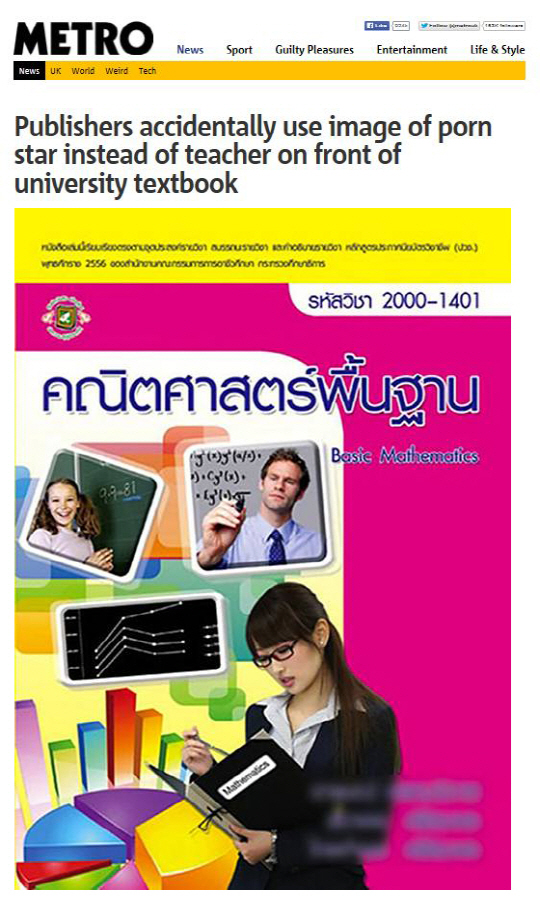태국 교과서 표지에 성인영화 여배우가 게재되는 소동이 벌어졌다.