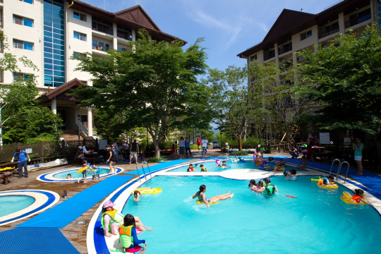 잔디밭에서 신나게 뛰고 나면 물놀이를 즐길 차례. 마운틴 콘도에는 어린 아이들도 이용할 수 있는 노천탕과 어른도 이용할 수 있는 야외 수영장이 있다. 주말(금, 토, 일)과 공휴일 및 공휴일 전일 오전 10시~오후 8시까지 이용할 수 있다.