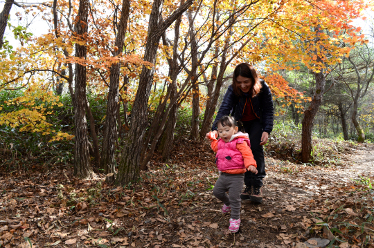 가족코스를 걷는 아이와 엄마