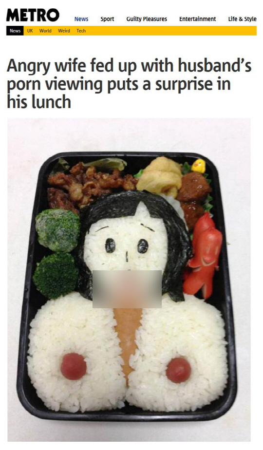 마치 성인영화의 한 장면을 연상케 하는 도시락으로, 남편의 직장 동료들이 본다면 깜짝 놀랄 일.