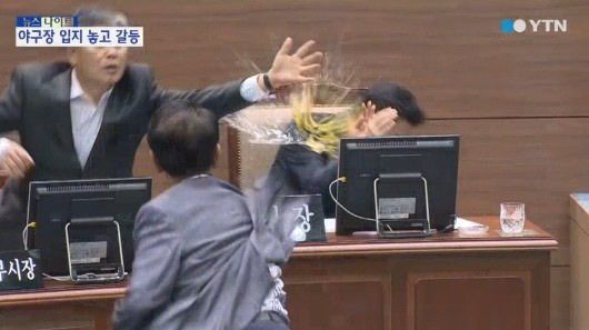 안상수 창원시장, 같은 당 시의원에게 계란 세례 봉변 "야구장 왜 변경해!"