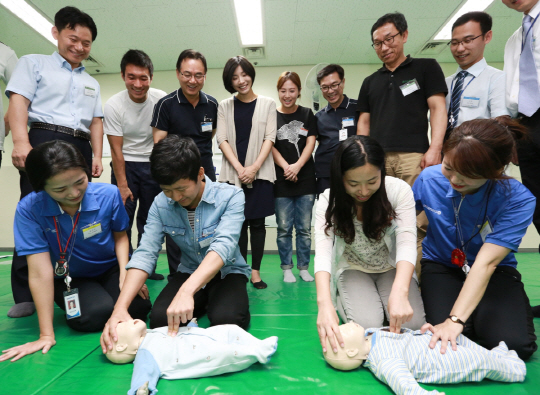17일 대한항공에 따르면 응급의학 전문의를 비롯한 9명의 대한항공 항공의료센터 전문 심폐소생술 강사들은 기내 또는 공항현장 등에서 발생할 수 있는 응급상황에서 순간대처능력 배양을 위한 심폐소생술 이론 및 실습, 자동제세동기(AED) 실습을 3시간에 걸쳐 진행했다.