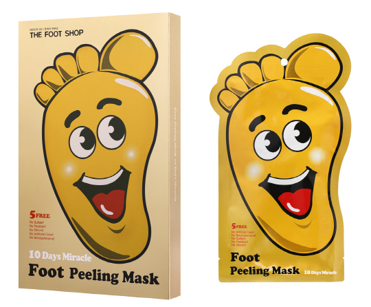 발 관리 전문 프랜차이즈 더풋샵의 각질없는 보들보들한 아기 발 만들기 프로젝트로 자체 개발된 신제품 '풋 필링 마스크'는 풋 전용 팩으로 각질 관리에 효과적인 수용성 AHA, 지용성 BHA 성분과 33가지 천연 식물추출물을 함유된 제품으로 1회 1시간 30분 정도 착용하면 4~5일 후 아기 발처럼 보들보들하게 관리가 가능하다. 또한 과일 추출물 성분이 발 피부의 보습과 보호를 도와 각질 케어 후에도 건조하지 않도록 도와준다. 가격은 3개입 1팩에 2만5000원.