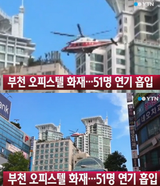 오피스텔 관리사무소 직원은 "건물 옆으로 검은 연기가 가득 보이는데 불이 난 것 같다"며 119에 신고했다.