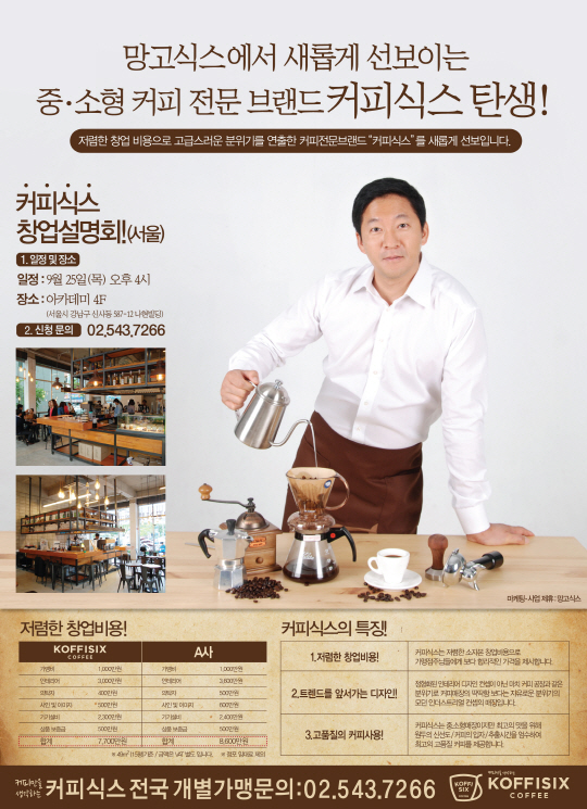 소규모 커피전문점 커피식스(KOFFISIX)가 25일 창업설명회를 진행한다.