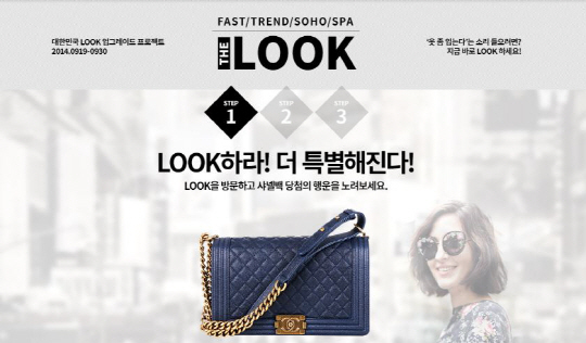 G마켓은 'THE LOOK' 오픈을 기념해 9월 30일까지 다양한 이벤트도 진행한다. 먼저 해당 기간 동안 '모바일 패션 THE LOOK' 방문 고객 중 1명을 추첨해 '샤넬 숄더백'을 증정한다. 모바일을 통해 접속 후 해당 페이지에서 매일 ID당 1회 응모 가능하며, 동 기간 모바일에서 패션 상품 구매 후 이벤트에 응모하면 '스타벅스 커피 음료권'을 받을 수 있다. 이벤트 기간 동안 일별 선착순 300명, 총 3600여명에게 제공한다.