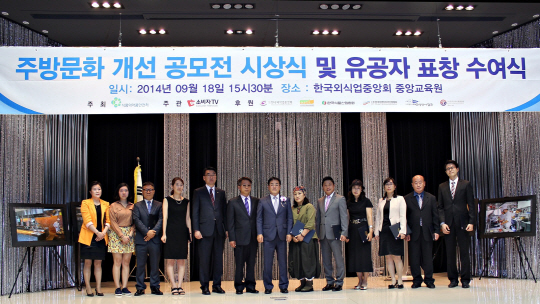 19일 치어스에 따르면 식품의약품안전처 주최로 18일 열린 '주방 문화 개선 공모전 시상 및 유공자 표창장 수여식'에서는 국민 모두가 안심하고 이용할 수 있는 음식점의 주방 문화 개선을 위해 실시한 '열린 청결 주방 사진 및 아이디어 공모전'와 더불어 주방 문화 개선을 위해 적극적으로 앞장선 유공자에 대한 표창이 진행됐다.