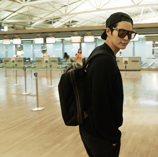 특히 캐주얼한 의상과 잘 어울리는 블랙 색상 루이까또즈 백팩으로 뒤태를 살렸으며, 공항패션의 필수 아이템인 선글라스로 세련된 남성의 이미지를 보여줬다.