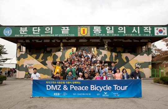 외환은행(은행장 김한조 / www.keb.co.kr )은 지난 21일 미국, 일본, 캐나다 등 10여개 국가의 외국인 고객(Expat) 80여명이 비무장지대(DMZ)를 방문하고 인근 임진각 평화누리공원에서 파주시 마정리에 이르는 "외국인 고객과 함께 하는 DMZ & 평화자전거 투어"행사를 실시하였다고 밝혔다.