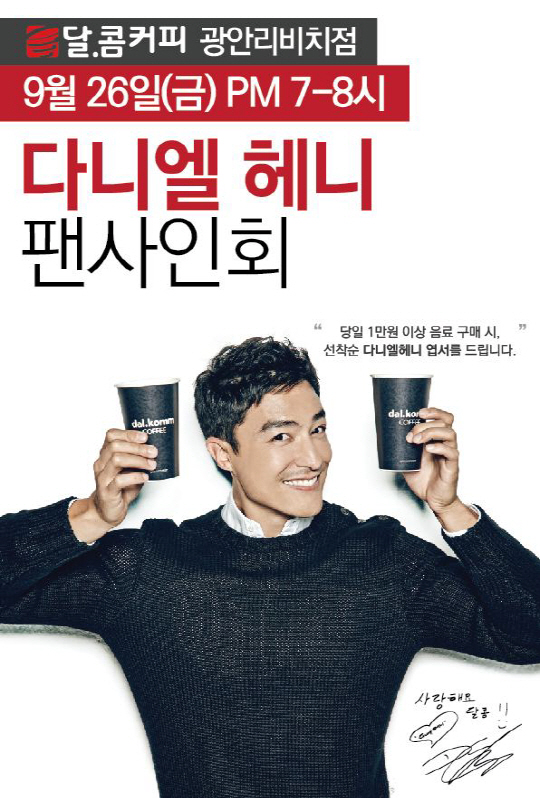이날 팬사인회는 달콤커피와 다니엘헤니를 좋아하는 고객들을 대상으로 오후 7시부터 광안리 비치점에서 진행되며 구매와 상관없이 선착순으로 참석할 수 있다.