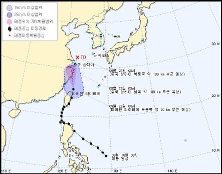 태풍은 22일 밤사이 중국 내륙에 상륙한 뒤 다시 해상으로 나와 24일 새벽에 서해상을 통과할 것으로 보인다. 이후 열대저압부로 약화될 것으로 예상된다.