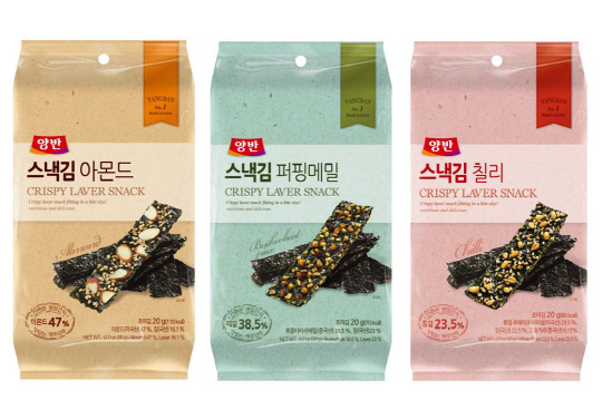 '양반 스낵김'은 김 두 장 사이에 아몬드, 통밀, 메밀 등을 넣고 바삭하게 구운 간식용 김이다. 한입에 먹기 좋은 크기로 잘라 담았으며 김과 어울리는 소스(데리야끼소스, 불닭소스)를 가미해 풍미를 살렸다. 아이들에겐 영양 간식으로, 어른들에겐 맥주 안주로 좋다.