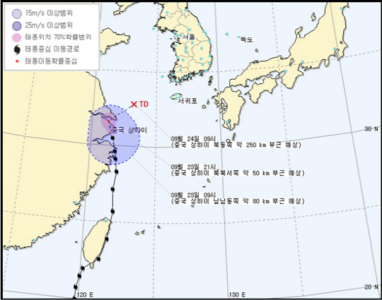 이에 따라 태풍으로 인한 비는 24일 늦은 밤에 강원도 영동과 경북 동해안을 제외한 대부분 지역에서 그칠 것으로 전망된다.