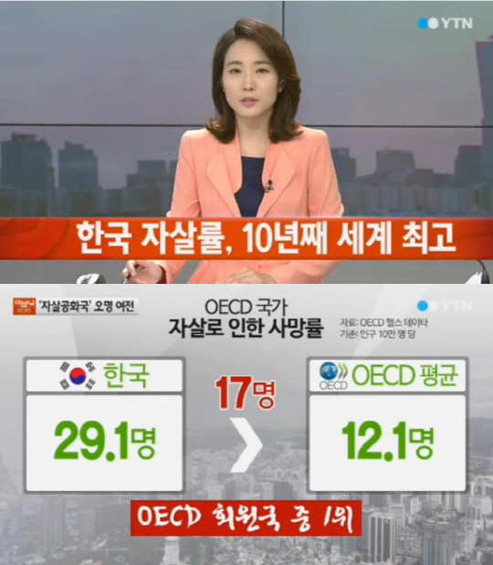 한국 자살률 OECD 최고 수준…지난해 하루 평균 40명 자살 '충격'