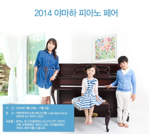 세계적인 악기음향전문기업 야마하뮤직코리아㈜(대표: 야마다 토시카즈)는 건반악기와 관악기를비롯한 야마하의 인기 모델을 한자리에서 만나보고 특별한 가격에 구매할 수 있는 '2014 야마하 피아노 페어'를 실시한다고 24일 밝혔다.