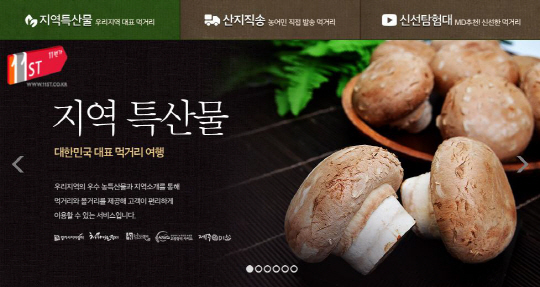 11번가는 28일까지 '전국! 먹거리 자랑!' 기획전을 열고 '먹거리 자랑 전국민 혜택' 이벤트를 실시한다. 다양한 할인 가격과 구매 금액의 100% 마일리지 혜택이 있다.