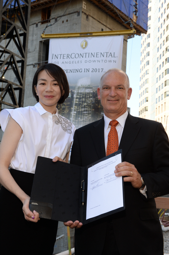 한진그룹에 따르면 브랜드 위탁운영 계약은 23일(현지시간) 조현아 칼호텔네트워크 대표, 커크 킨셀(Kirk Kinsell) 인터콘티넨탈호텔그룹 미주지역 대표 등 주요 관계자가 참석해 이뤄졌다.