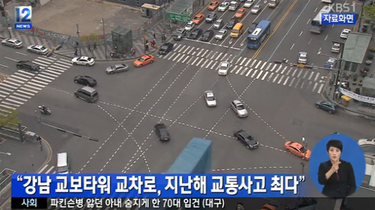 지난해 전국에서 교통사고가 가장 자주 발생한 지역은 서울 강남구 교보타워교차로로 나타났다.