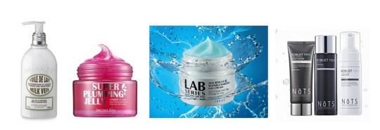 피부 관리에 신경쓰는 그루밍족들을 위한 제품도 인기다. 랩 시리즈의 '에이지 레스큐+ 워터-차지드 젤 크림'은 즉각적으로 피부 깊숙이 수분을 채워주며 안티에이징에 효과가 있는 남성용 스킨 케어 제품이다. 블루베리, 녹차, 크랜베리, 석류, 포도씨 등 10가지 항산화 성분으로 활성산소의 축적을 막아 피부 보호, 노화예방, 피부탄력에 도움을 준다.