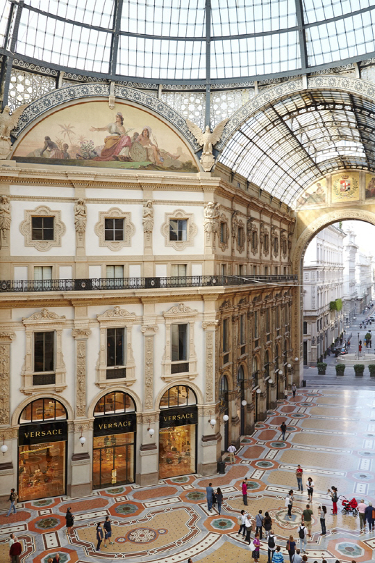 베르사체는 단순히 새로운 부티크의 내부 인테리어 뿐 아니라 '비토리오 에마누엘레 2세 갤러리아' 자체의 복원작업까지 참여했다. 앞으로 13개월 동안 갤러리아의 1만4000㎡에 달하는 전체 공간이 복원되어, 지어진지 150년 만에 건물 본연의 아름다움이 밀라노 시민과 전세계인의 눈 앞에 드러나게 될 예정이다.