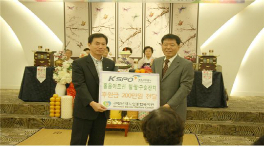 국민체육진흥공단(이사장 이창섭) 경륜경정 중랑지점은 지난 17일 지역 내 취약계층 홀몸 어르신들을 초청해 '칠·팔·구순잔치'를 개최했다. 중랑구 묵동의 웨딩홀에서 열린 이날 경로잔치에는 올해 100세를 맞이하신 최소선 할머니를 비롯하여 여섯 분의 어르신들이 초청돼 나진구 중랑구청장을 비롯한 많은 가족들로부터 축하 인사를 받았다. 황용필 지점장과 10명의 직원들은 이날 어르신들의 도우미로 나섰으며 200만원의 기부금을 전달했다.