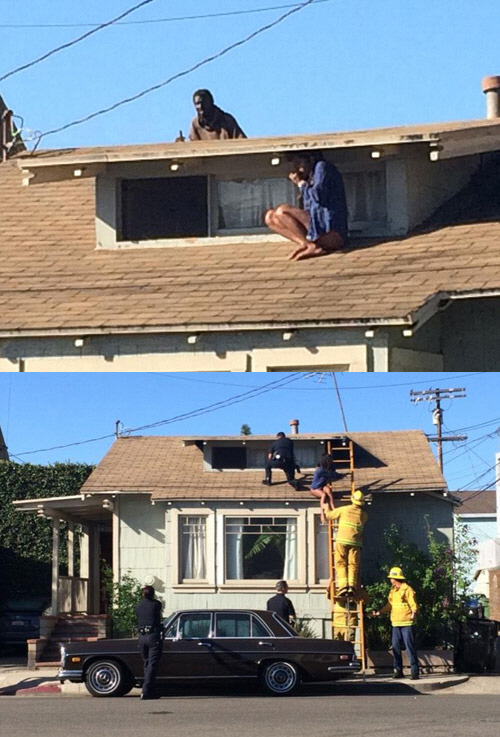 25일(현지시간) 영국 일간지 데일리메일에 따르면 지난 24일 미국 로스앤젤레스에서 멜로라 리베라라는 여성의 집에 크리스찬 힉스(29)라는 부랑자가 침입했다. 당시 리베라가 침실에서 휴식을 취하고 있을 때 힉스는 문을 부수고 침입을 시도 하고 있었다. 이에 위기를 느낀 리베라는 지붕위로 올라가 처마 밑에 몸을 숨겼다. 겁에 질린 리베라는 즉시 경찰에 신고했고 흉기를 들고 있는 침입자는 경찰에 붙잡혔다. 경찰은 지붕에 사다리를 놓고 리베라를 구조했고 그 후에 침입자 힉스를 검거했다. 이 끔찍한 상황은 길을 가던 행인에 의해 포착돼 카메라에 찍혔다.