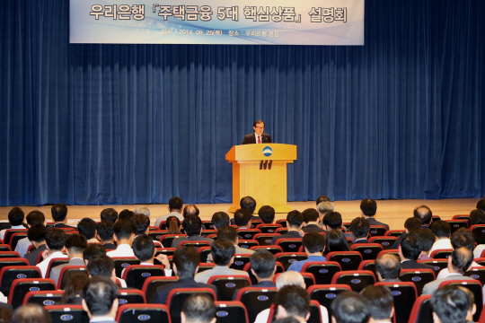 우리은행(행장 이순우)이 26일 서울 소공로 본점에서 국토교통부, 대한주택보증과 함께 250여개 건설사의 500여명의 임직원이 참석한 가운데 주택금융 5대 핵심상품 설명회를 개최했다고 밝혔다.