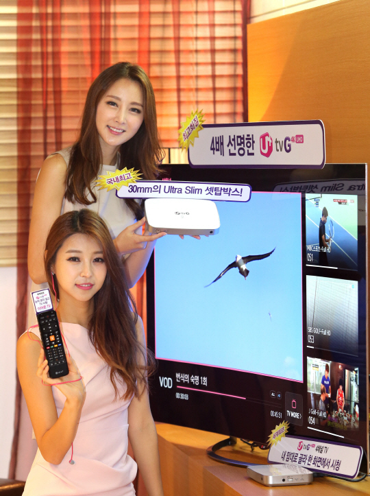LG유플러스(부회장 이상철)가 30일 IPTV 사업자 중 세계 최초로 쿼드코어 UHD 셋톱박스를 출시한다고 밝혔다. 초고화질 4K UHD(Ultra High Definition)방송은 물론 스마트한 4가지 핵심 서비스를 제공하는 U+tv G4K UHD 서비스도 선보인다.
