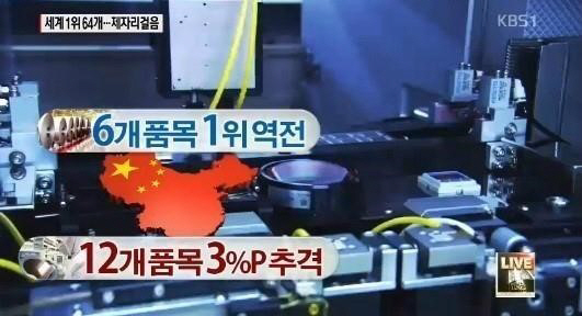반면 세계 시장점유율 1위를 차지하는 품목이 세계에서 가장 많은 중국은 1485개로 2009년 1231개에서 불과 3년 만에 254개 품목을 늘렸다.