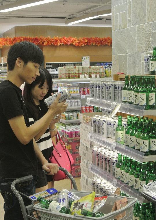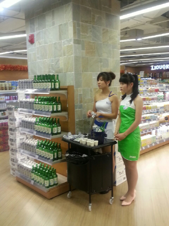 현지 중산층 이상 소비자들이 주고객층인 이곳 마트 주류 판매대에 하이트진로의 진로 소주와 뉴하이트가 세계 여러나라의 주류들과 나란히 자리했다.