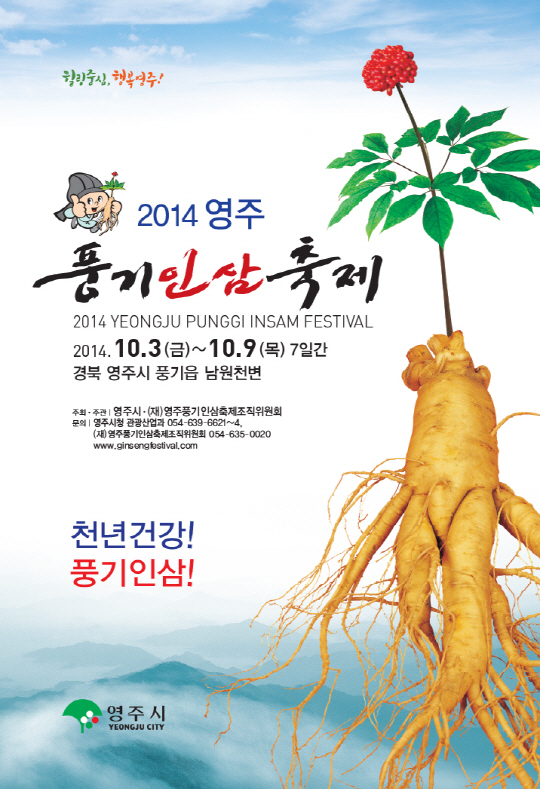 소백산의 겨울 눈꽃과 봄 철쭉, 가을 단풍에 맛난 한우와 사과, 그리고 소수서원, 부석사 등 빛나는 문화유산을 거느린 경북 영주는 한마디로 전천후 여행지로 통한다. 특히 가을이면 우리나라 최초의 재배삼 효시 지역이라는 자부심을 가득담은 '영주 풍기인삼축제'도 펼쳐 건강-힐링여행지로서의 매력을 발산한다. 올해로 열일곱 번째. 오는 10월 3일부터 9일까지 영주시 풍기읍 남원천변에서는 온 가족이 함께 즐길 수 있는 '2014 영주 풍기인삼축제'를 개최한다. 산업형 축제의 전형으로 저렴한 가격에 고품질의 풍기인삼을 만날 수 있어 해를 거듭할수록 큰 인기를 끌고 있다. 아울러 건강체험, 인삼 수확체험, 인삼시식회 등 온가족이 함께 즐길 수 있는 다양한 콘텐츠는 흡족한 체험형 건강축제의 또다른 매력이다.
