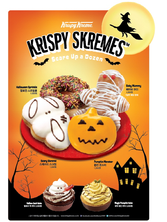 세계적인 도넛 브랜드 크리스피 크림 도넛(대표 노일식, www.krispykreme.co.kr)이 할로윈 시즌을 맞아 할로윈 컵셉의 도넛 4종과 프리미엄 도넛 케익 2종을 11월 16일까지 한정 판매 한다.